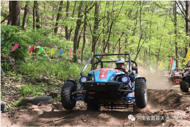 結(jié)構(gòu)簡單、操作靈活、安全性好,成為適合大眾化消費(fèi)的運(yùn)動。每逢雙休日,人們紛紛奔向賽場,在蜿蜒起伏的賽車道上過把癮,成為都市時尚。天池山越野卡丁車俱樂部擁有專業(yè)山地賽道,專注越野,可以體驗駕駛山地越野卡丁車的激情與速度。
