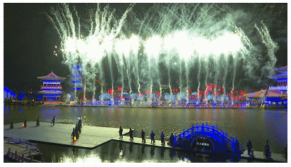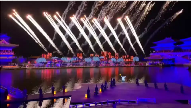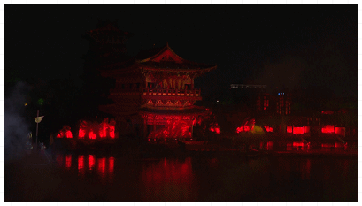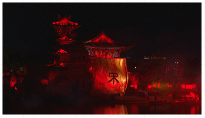 20:10,經(jīng)典的音樂(lè),陌生又熟悉的畫(huà)面,再次出現(xiàn)在景龍湖上。自此,《大宋·東京夢(mèng)華》之夜成功點(diǎn)亮!