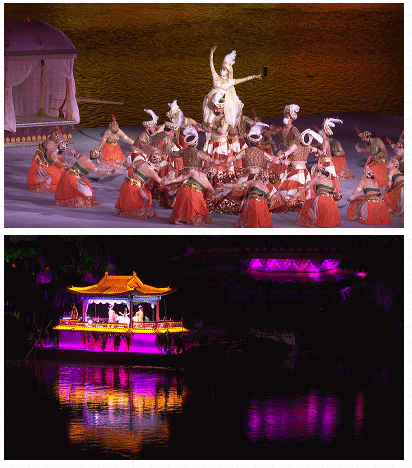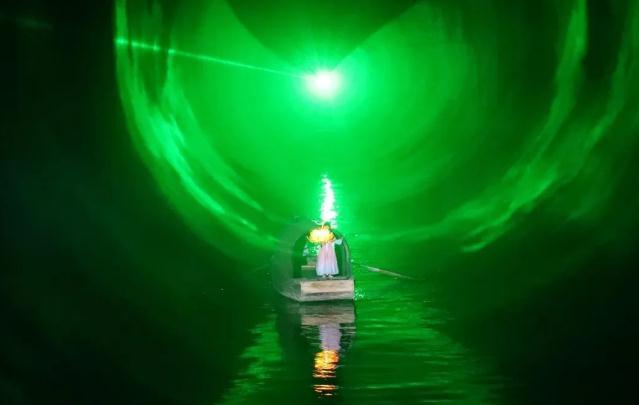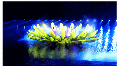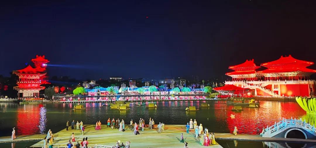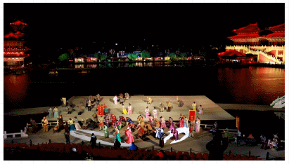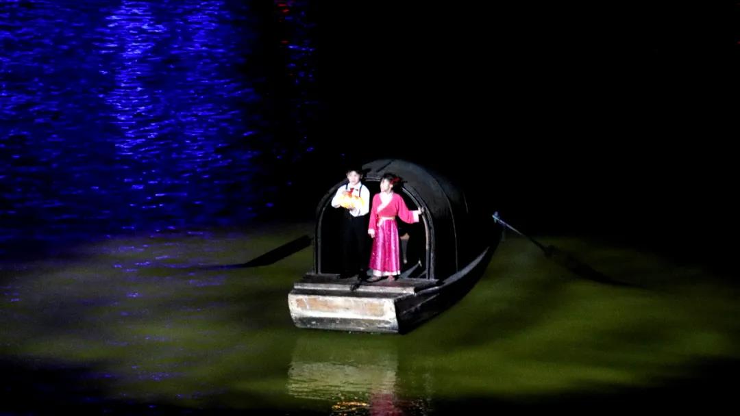 悠揚(yáng)清麗的歌聲乘著夜色而來(lái),晶瑩剔透的菊花舞臺(tái)徐徐綻放,少女們曼妙舞姿在光影中交錯(cuò),我們念想中的北宋,以這種方式在水面上與我們重逢。