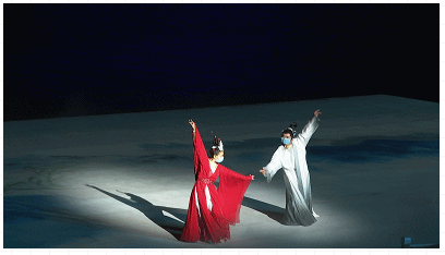 第四幕《少年游》向觀(guān)眾展現(xiàn)了情濃的宋都,也展現(xiàn)了萬(wàn)國(guó)來(lái)朝的盛世大宋,美輪美奐的愛(ài)情絕唱,成為了大宋長(zhǎng)卷里炫目的桃紅。