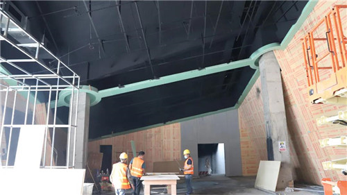 截至目前,館內(nèi)負(fù)一層及一層空調(diào)設(shè)備、消防設(shè)施完成總工程量的90%。金東數(shù)字創(chuàng)意公司所負(fù)責(zé)的項(xiàng)目中,目前已完成總工程量的75%,球幕影院、礦洞體驗(yàn)區(qū)、沉浸式體驗(yàn)電子屏、虛擬過山車項(xiàng)目已完工過半。序廳 、中廳正在安裝吊頂、裝修墻面工作。