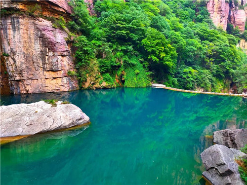 寶泉的水,碧綠無暇,純凈深湛,像一塊墨玉,清泉、碧潭,在陽光下流光溢彩;指尖微碰,清涼的感覺傳到心里,掬一把山泉水喝,甜甜的,就到達身體的每一個細胞......