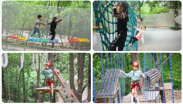 嵖岈山冒險谷,建在樹上的游樂園,引進國際流行戶外運動新風尚,是一項大人、小孩兒、親子都可以體驗的戶外項目,有空中獨木橋、鋼索、滑板、樹上滾筒,親子線讓你和孩子共度美好的親子時光之外,也能鍛煉孩子的專注力、協(xié)調(diào)能力及思維能力,更能提高孩子的膽識,激發(fā)孩子的潛能。