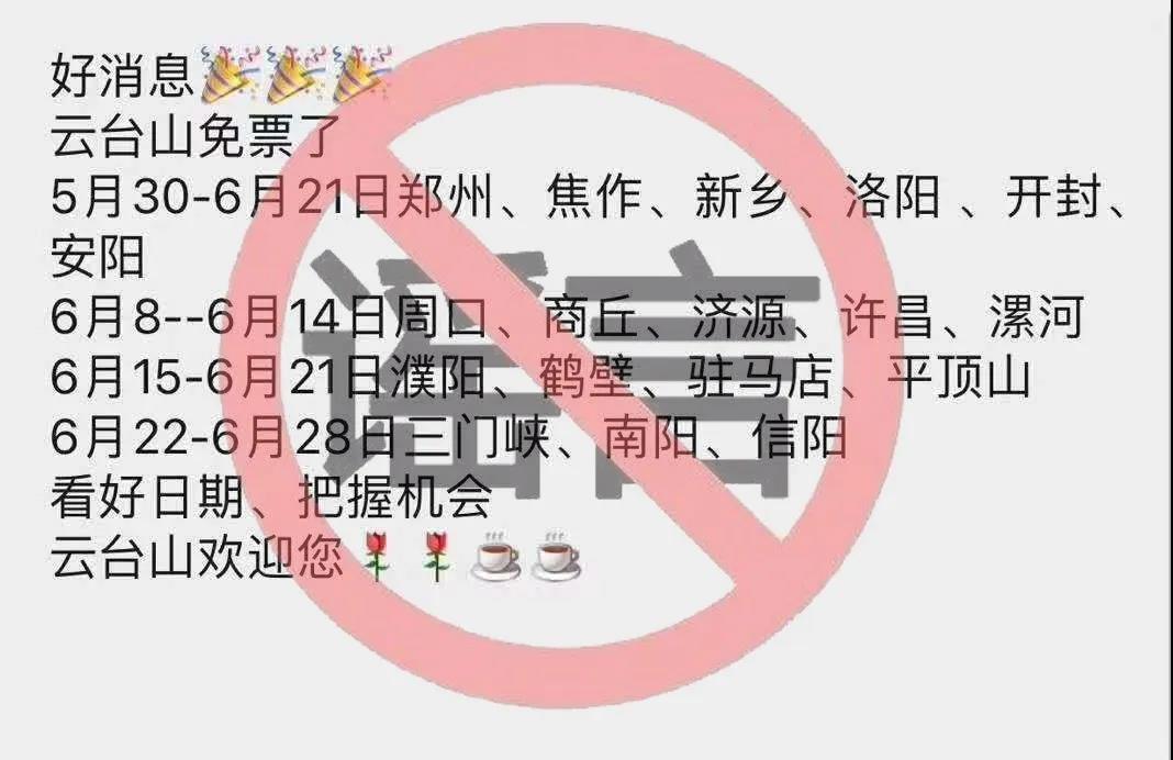 自“健康自駕游 暢玩家鄉(xiāng)月”第一波福利上線后,河南其余地市的家鄉(xiāng)人紛紛表示翹首以盼,同時網(wǎng)上也出現(xiàn)了各種虛假信息,云臺山景區(qū)在此辟謠并提醒大家,所有活動信息以官方(云臺山景區(qū))發(fā)布為準,切記!不可!聽信!謠言!