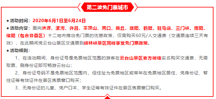 為了保障游客們的最佳游覽體驗,云臺山景區(qū)對全省十八地市進行分批次免門票活動,第二波免門票城市來了!