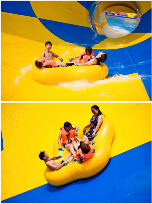 五彩斑斕的超級長長長滑道,跟小伙伴組隊(duì)同時(shí)滑沖入水中,濺起的朵朵浪花猛的打在臉上!過癮!真的感覺要滑出天際啦!