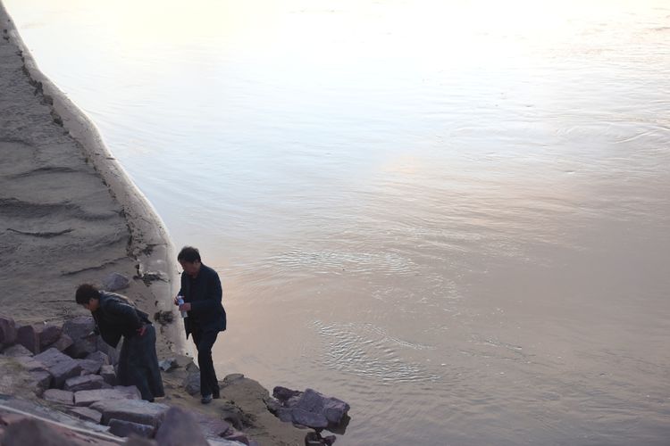 繼續(xù)聽李書升老人的講解,“河洛文化的最大特點(diǎn),一是國(guó)都文化連綿不斷。黃河文明興盛期的帝國(guó)時(shí)代,西漢至北宋一直都建都在西安、洛陽(yáng)和開封。幾千年的建都?xì)v史,形成了具有極大影響的國(guó)都文化。二是樹大根深的根文化都在這一地區(qū)。由于歷史的各種原因,中原人口大量向四方播遷,甚至播遷到海外,據(jù)姓氏專家研究,中國(guó)一百大姓中有七十多姓的祖根或一支祖根源于中原,因此這里又是華人之根。”就在河洛匯流處,我看見(jiàn)兩個(gè)人一起拿著礦泉水瓶,下到黃河岸邊,裝滿兩瓶水帶走,我想這大抵也會(huì)和根文化有關(guān)吧!