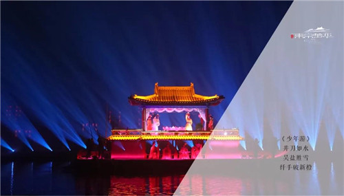 大型水上實(shí)景演出《大宋·東京夢華》是從宋詞中去挖掘、去創(chuàng)作。演出復(fù)活了八闕宋詞,它編排精巧,獨(dú)辟蹊徑,以張擇端筆下的《清明上河圖》中的景象為背景,重現(xiàn)曾經(jīng)的繁華大宋。讓我們在千年后的今天,還能坐在看臺上,看著如夢如幻的場景,聽著或婉約或豪放的宋詞,感受著宋時(shí)吹來的風(fēng)。