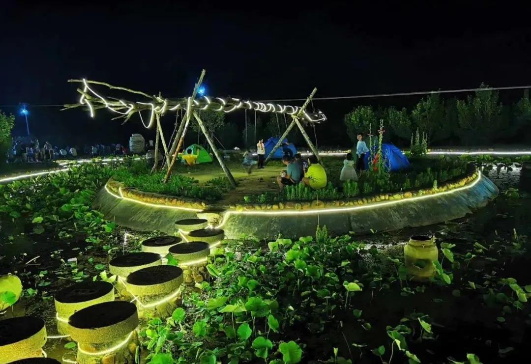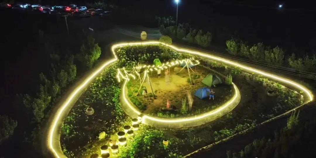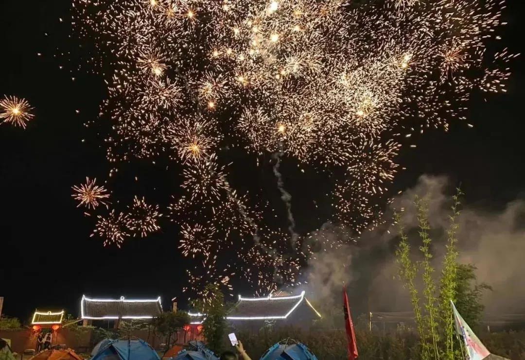 農(nóng)場(chǎng)的夜色十分迷人,在這樣靜謐的田園風(fēng)光中露營(yíng),又有燈光和煙火的輝映,美哉!