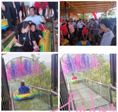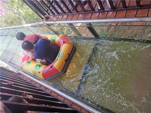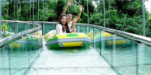 網(wǎng)紅高空玻璃滑漂已經(jīng)成功試水,依靠水流和玻璃的落差,推動橡皮艇前行,一只橡皮艇一次可乘坐2或3人,所以膽小的小伙伴也不用太害怕哦!