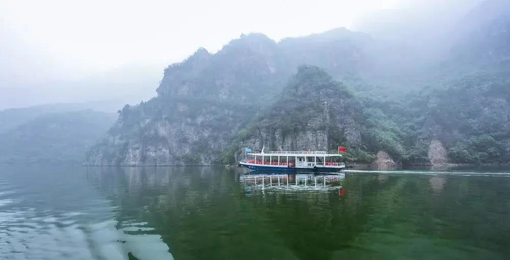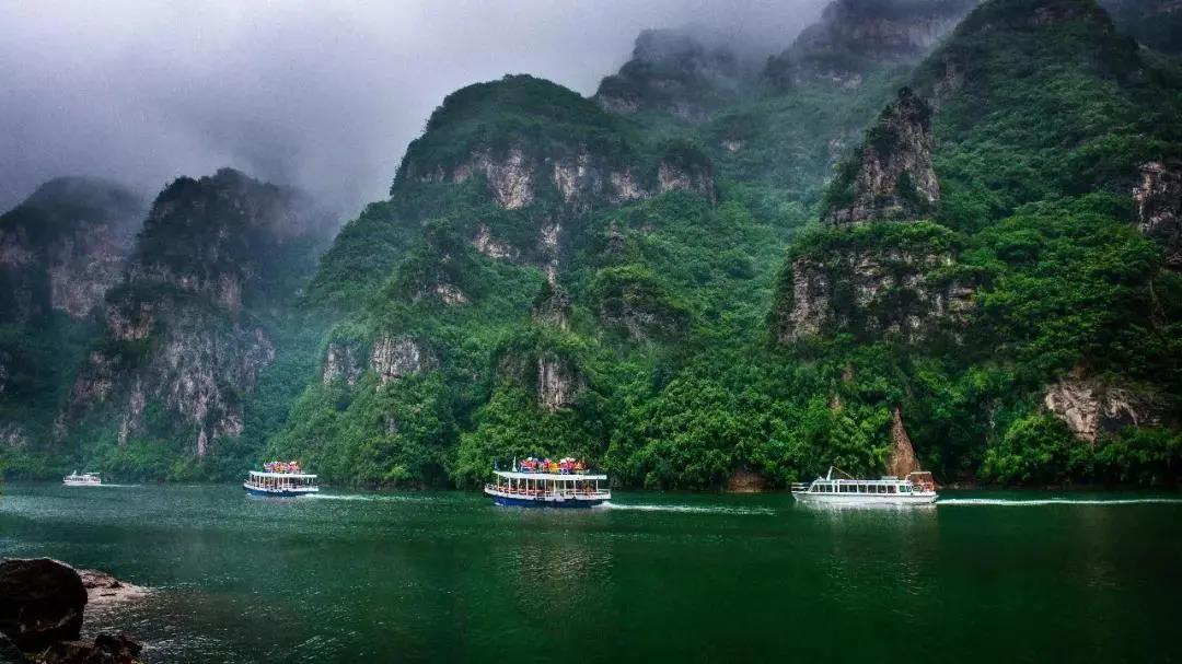 雨中的青天河正是觀云海的好時候,如此夢幻般的青天河怎能錯過。煙雨蔥蘢中,大泉湖與淡青色的天空,翠綠色的湖水,郁郁蔥蔥的山峰交相輝映,如潑墨丹青一般,像極了一幅素雅的縹色畫卷。