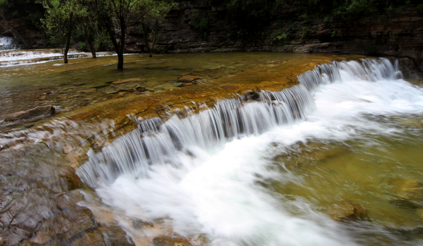 谷內(nèi)群瀑爭流,清涼宜人,眾多的溪流山泉匯合而成大小不一的瀑布,白花花的水流卷成浪花奔騰而下,水沖擊石頭的聲音直抵心肺。瀑布激起的水花如雨霧般騰空而上隨風(fēng)飄飛,漫天浮游帶來一陣陣清涼,時刻保持著16°C的夏天!