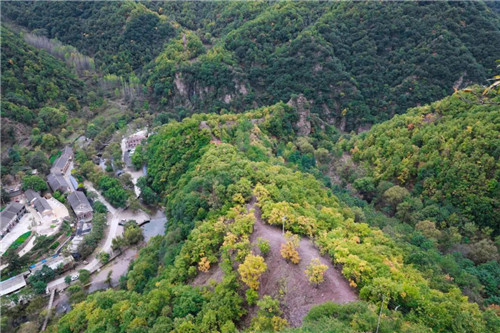 在小溝背沿山而上,在樹木掩映之下竟有長達(dá)百米的五色石群,這些石頭大小不一,高低錯(cuò)落,密密麻麻擺在鳳凰嶺山梁之上,俯瞰之下,儼然一只巨大的鳳凰馱著五色石在峽谷間展翅飛翔。