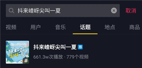 1、打開抖音APP,點擊"搜索",搜索話題:#抖來嵖岈尖叫一夏