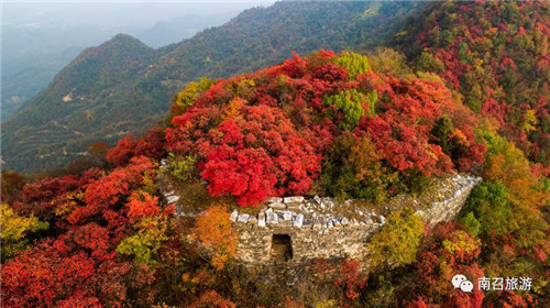 8、南召楚長城遺址 。2000年以來,在南召縣11個鄉(xiāng)鎮(zhèn)發(fā)現(xiàn)有長城遺址,經(jīng)有關(guān)專家學(xué)者實地考查后,認(rèn)定為中國最古老的長城遺址——楚長城,2005年南召縣人民政府將其中重要的19處遺址公布為縣級文物保護單位。周家寨遺址是楚長城的代表,位于縣城西北板山坪鎮(zhèn)華山村,面積近40平方公里,由周家寨、盧家寨、王家寨三座山峰構(gòu)成核心區(qū)域,遺址保存較為完好,為楚長城研究提供了重要的實物標(biāo)本。詩曰:伏牛山上古長垣,起伏盤旋上頂巔。巨龍雖已身破損,依舊奔騰壯南天。