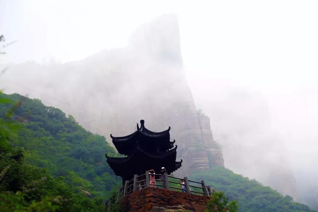 山,被看似厚重卻稀薄的白色煙霧纏繞籠罩。行至中途,不經(jīng)意間仰望,竟見一座古樸的涼亭在崖邊——“山上是否住著神仙?”