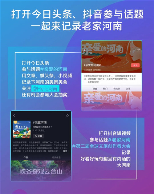 抖音話題#老家河南、頭條話題#親愛的河南#已上線,小伙伴們可以添加話題,或上傳抖音視頻、或記錄美景、美食,分享你的美好生活。