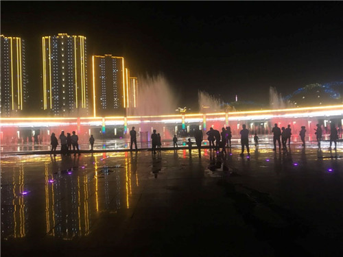 時(shí)代廣場(chǎng)動(dòng)感音樂(lè)噴泉、絢麗燈光