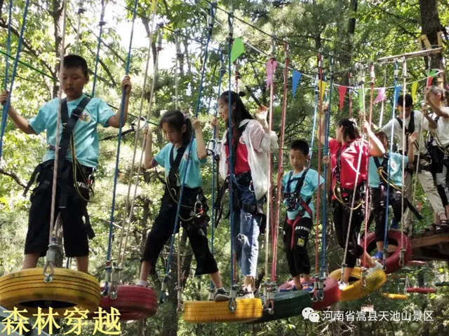 天池山森林穿越項(xiàng)目總長(zhǎng)200米,包含秋千橋、障礙橋、溜索等18個(gè)難度不同,風(fēng)格迥異的游戲關(guān)卡,讓游客能在“空中”探險(xiǎn)大自然,感受森林穿越的樂趣。