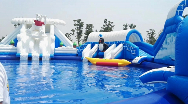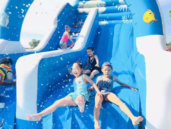 夏日的水樂園,絕對是遛娃的好去處,水上充氣城堡,小朋友的最愛。