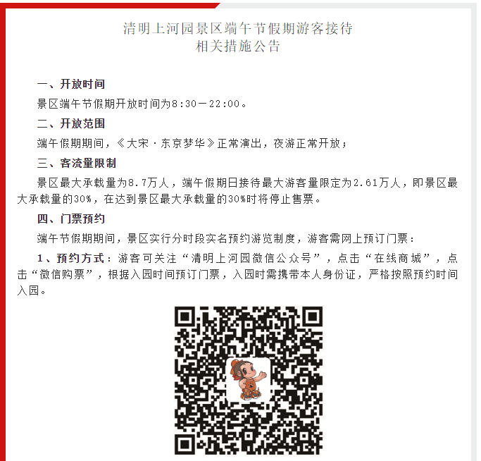 據(jù)了解,端午小長假期間,清明上河景區(qū)實行分時段實名預(yù)約游覽制度。