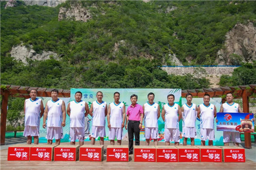 張海明為河南太陽石集團代表隊頒發(fā) “龍舟競速”冠軍