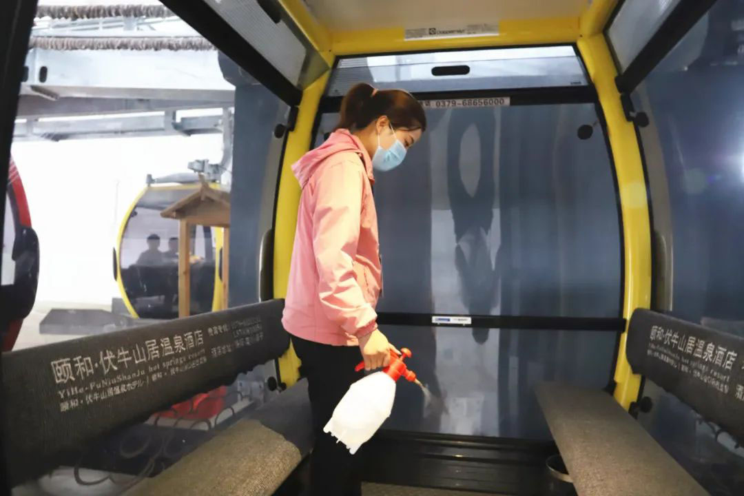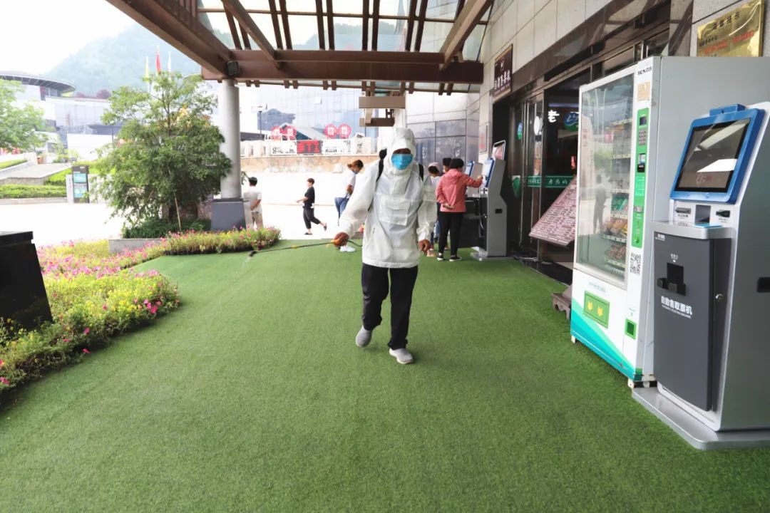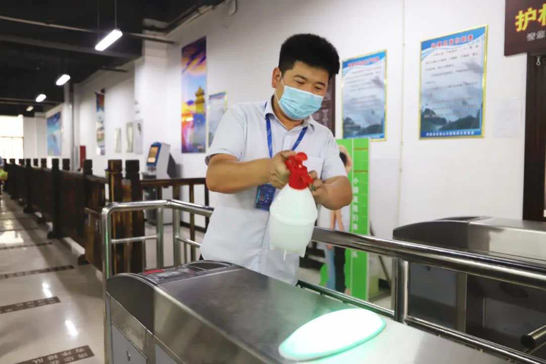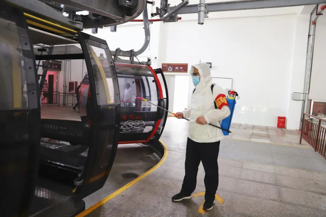 在票務(wù)中心、索道站、洗手間等室內(nèi)場(chǎng)所,嚴(yán)格執(zhí)行環(huán)境衛(wèi)生消殺制度,定時(shí)噴灑消毒液,確保為游客營(yíng)造出安全、衛(wèi)生的游覽環(huán)境。