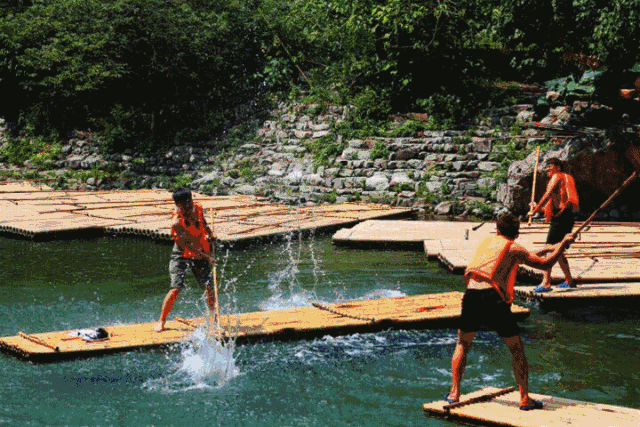 打水仗、摸石頭、劃竹筏、蕩秋千、走浮橋……
