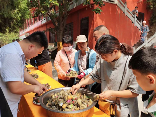 古靈山景區(qū)推出的誦讀經(jīng)典、漢服游園、包粽子、鎮(zhèn)五毒、女媧賜福等文旅活動精彩紛呈,游客朋友們通過代代傳承的民間習俗,緬懷古代先賢,傳承優(yōu)秀傳統(tǒng)文化,涵養(yǎng)家國情懷。
