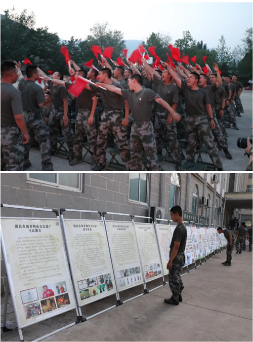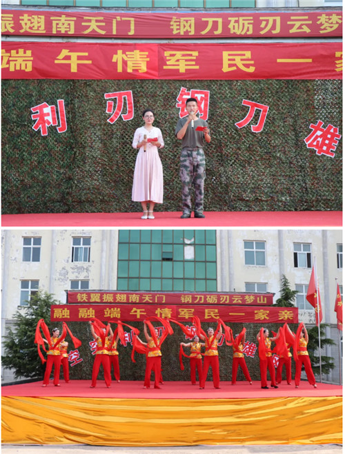 端午節(jié)當天,在緊臨中華古軍校云夢山景區(qū)的山頭村,淇縣文廣旅局以“融融端午情 軍民一家親”為主題,隆重舉辦“文藝進軍營”“非遺進軍營”系列文旅活動,與駐軍部隊官兵共度端午,祈福國泰民安。