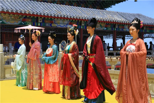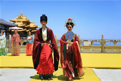 十位來自不同“朝代”的小哥哥小姐姐,身著華美漢服,儀態(tài)動(dòng)人,款款而來,小哥哥落落大方,玉樹臨風(fēng);小姐姐楊柳細(xì)腰,仙姿玉色;他們儀態(tài)萬方,顧盼生姿,向大家展示了傳統(tǒng)文化最浪漫的一面。