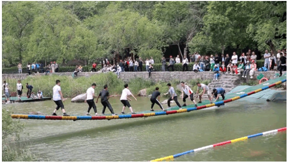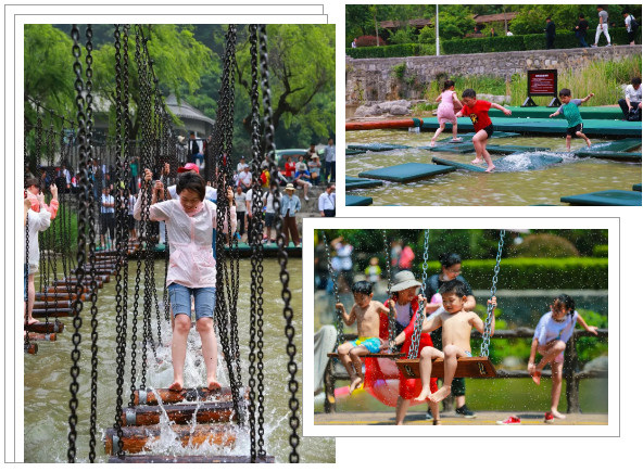 網(wǎng)紅搖擺橋、浮橋、獨木橋、木鏈樁……橋上對戰(zhàn)、花式落水、圍觀吃瓜……掀起嗨玩高潮!