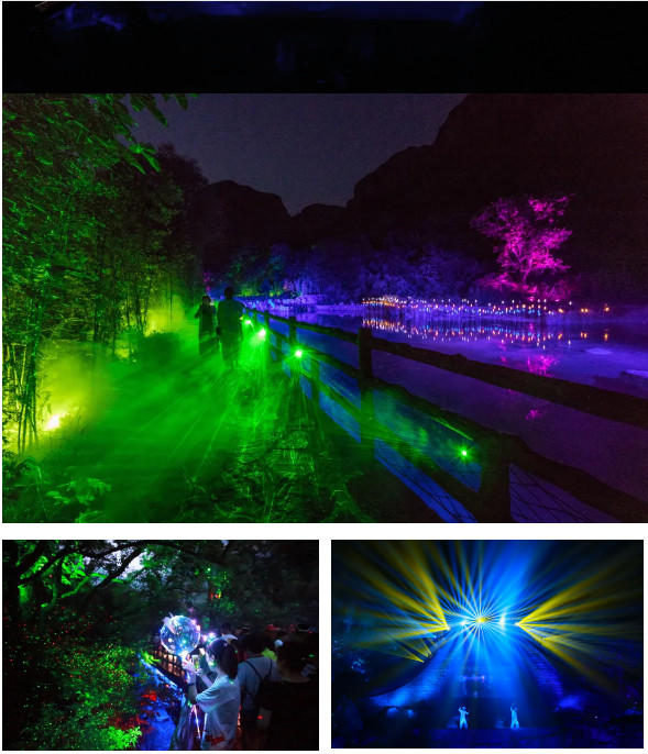 當(dāng)黑科技與夢幻夜景完美結(jié)合,就有了無與倫比的云臺山夜游,2000多套激光螢火蟲,近千套舞美專用LED帕燈,激光燈投影、水幕3D投影、全息投影......,打造出一個獨一無二的太行山夜色。