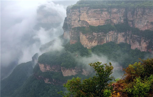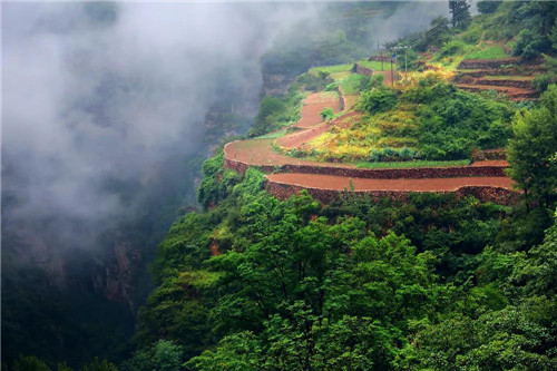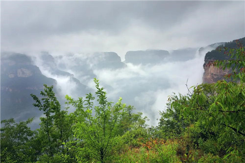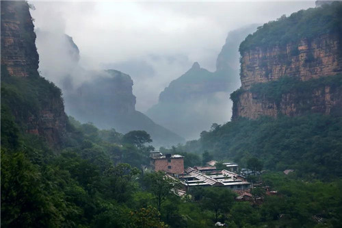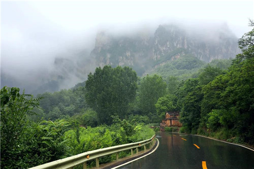 冒雨走進(jìn)太行大峽谷,走進(jìn)緊張、刺激、如仙境一般的太行天路。猶如置身百里畫廊,滿眼望去,無處不是大氣磅礴的國畫山水長卷,一睹綠浪滔天的林海、刀削斧劈的懸崖、千姿百態(tài)的山石、如練似銀的瀑布、崖壁之上的村莊、蜿蜒崎嶇的山道、勤勞樸實(shí)的農(nóng)家,在天地相接之處,遠(yuǎn)處的山巒疊嶂,云海翻騰,宛如仙境。
