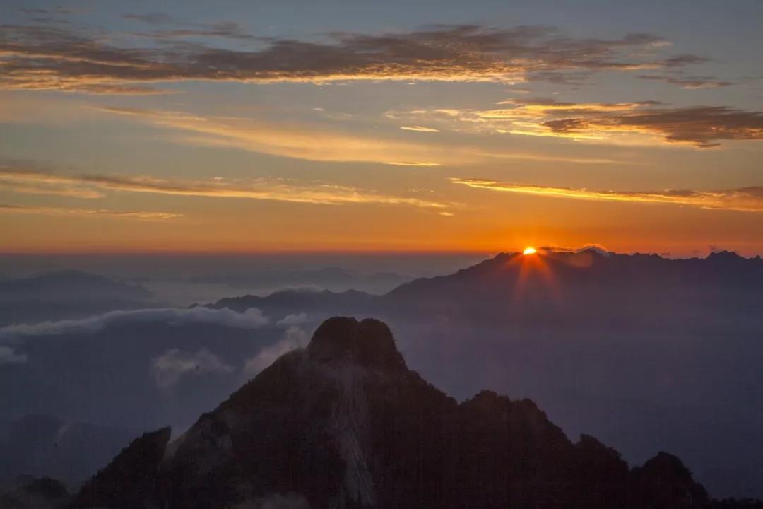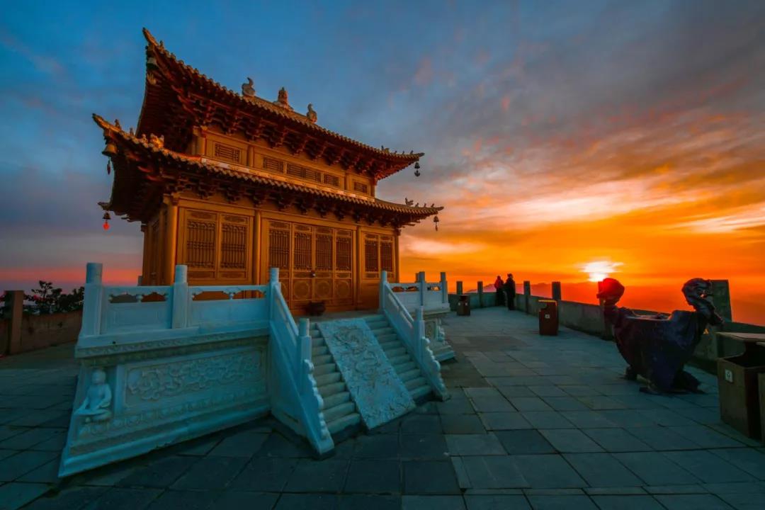 玉皇頂?shù)南﹃?yáng)和日出,金碧輝煌。陽(yáng)光灑落在云朵上、金殿上,朦朦朧朧,一切都那么和諧!云海起時(shí),或如驚濤駭浪、浪花飛濺,或如山谷間涌動(dòng)、上下飛騰,或在山峰間纏綿徘徊、如夢(mèng)似幻,讓人不由得感嘆大自然的神奇奧秘。