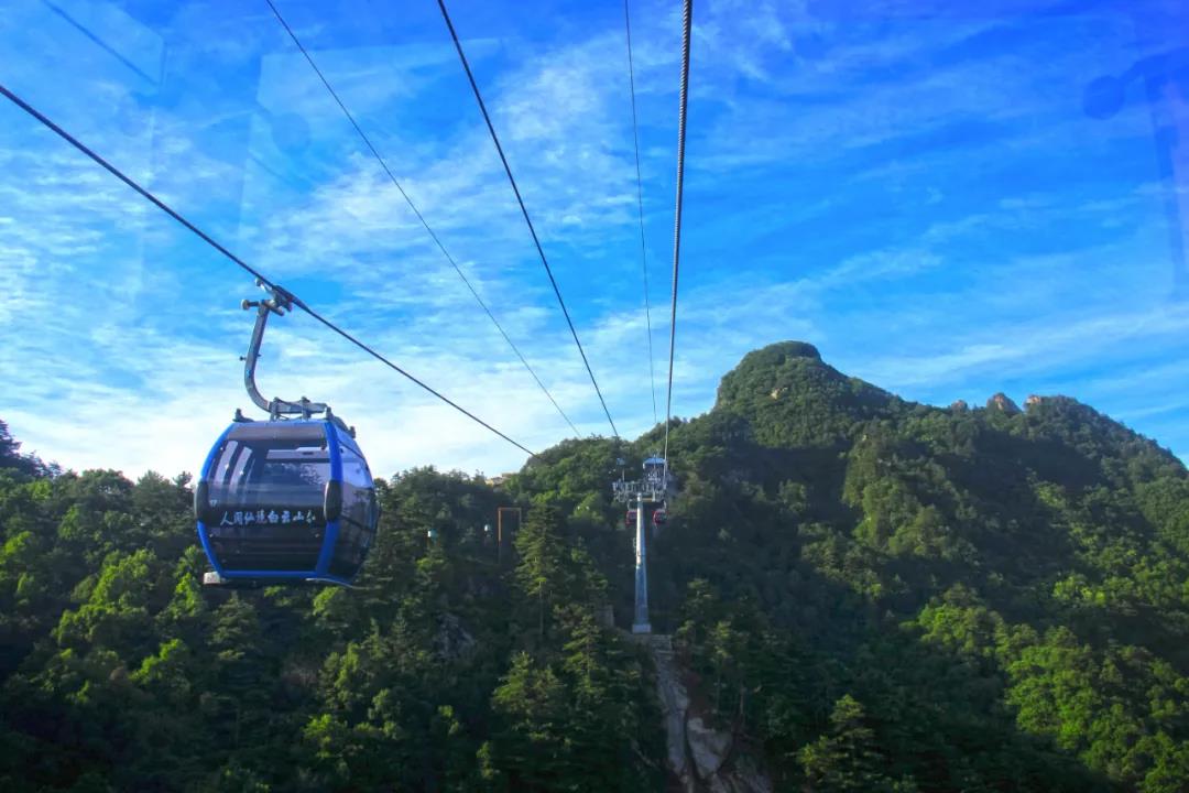 低頭俯瞰,山間林木蔥蘢,像一片綠色的海,而自己就像坐著小船,在林海之上漂流。那一刻,索道上的你,與山林融為一體。風(fēng)在耳邊呼呼呼地吹,燥熱、疲憊全都在風(fēng)里消解。