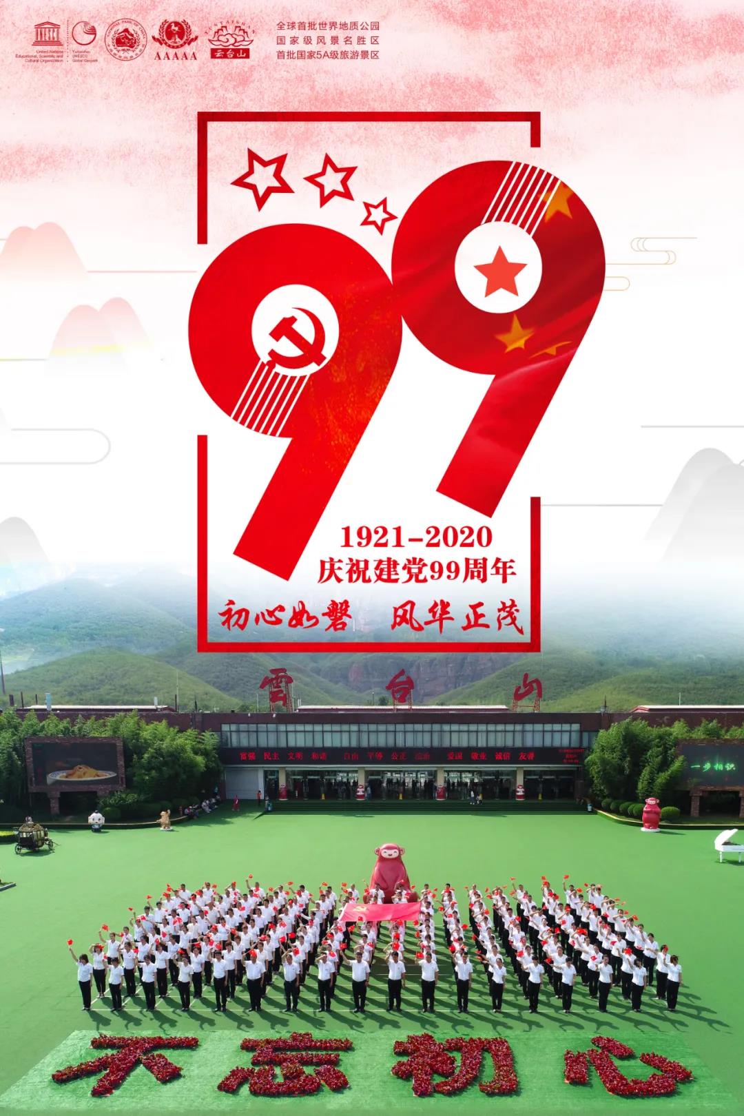 99年,歷史滄桑巨變!99年,時代不斷更迭!憶崢嶸歲月,看今朝輝煌,不忘初心跟黨走,砥礪前行感黨恩。“七一”建黨節(jié),全體云臺山人向黨致敬!