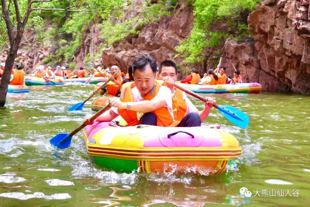 U型漂流全長3公里,兩岸山峰秀美,坐在皮筏中,順水而下,邊吹著河風,邊欣賞美景,更是享受清涼快樂呀!