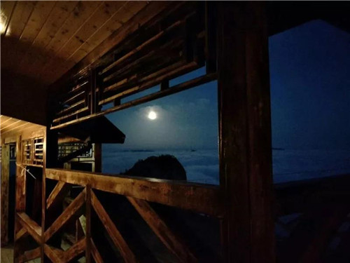 夕陽欲落老君山,云海茫茫浩無邊。