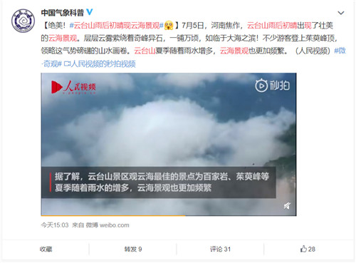 是不是超心動了!走著!一起來看看云臺山的盛世美顏——云海奇觀——