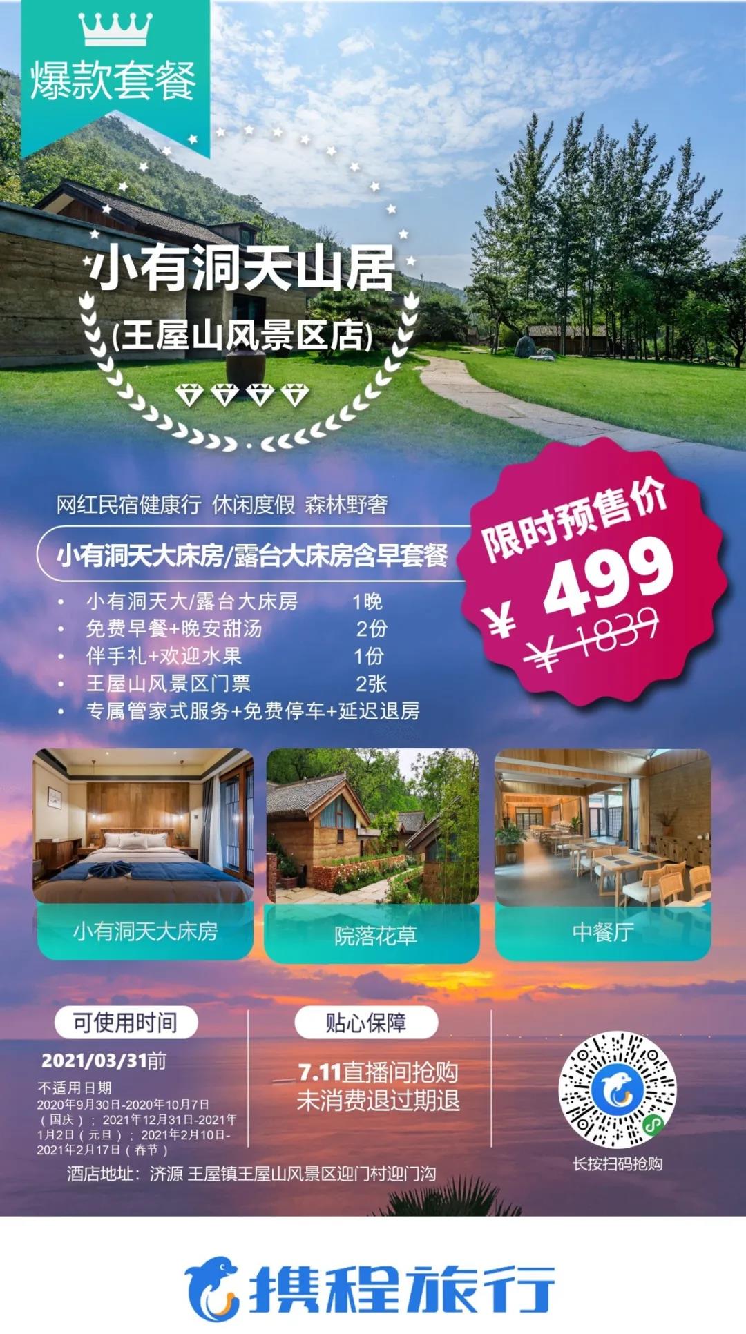 1、原價(jià)1839元的小有洞天大床房/小有洞天露臺(tái)大床房套餐價(jià)格僅售賣499元。