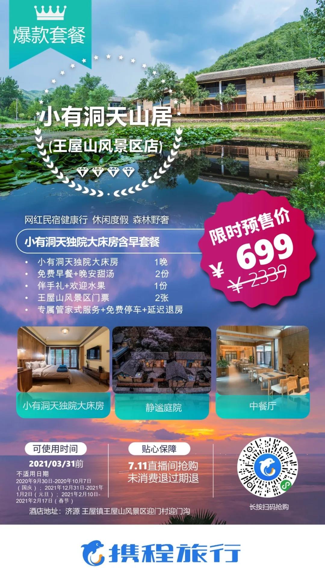 2、原價(jià)2339元的小有洞天獨(dú)院大床房套餐僅售賣699元。