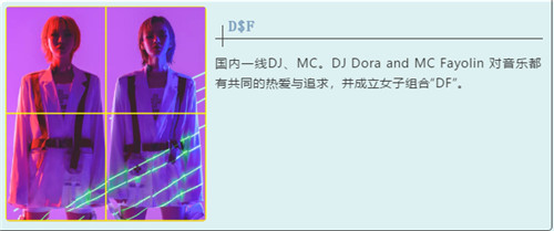國(guó)內(nèi)一線DJ、MC。DJ Dora and MC Fayolin 對(duì)音樂(lè)都有共同的熱愛(ài)與追求,并成立女子組合“DF”。