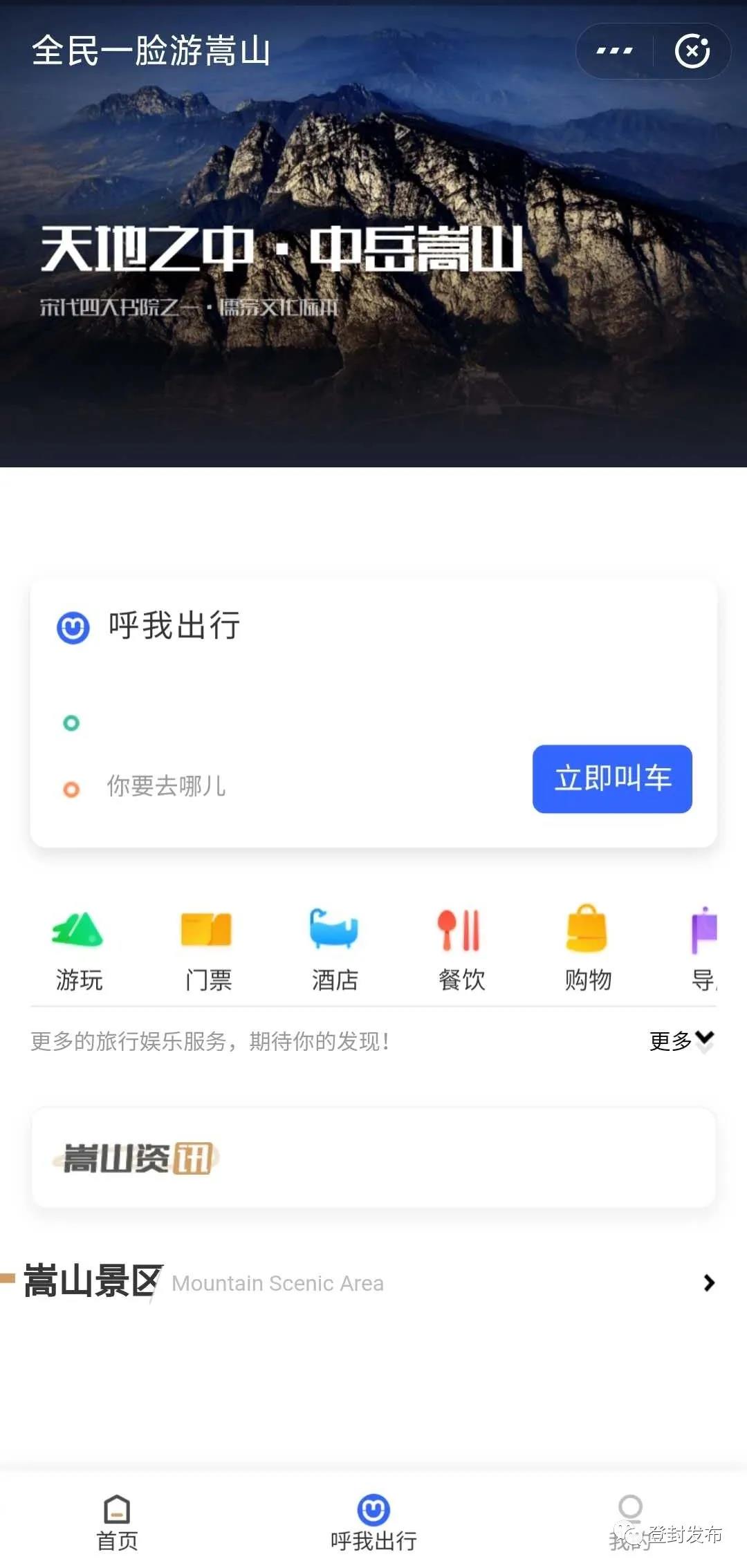 ▲支付寶一臉游嵩山小程序界面