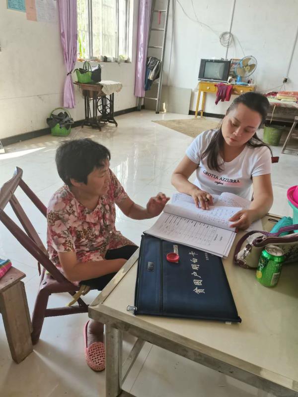 上午8點,各位幫扶責任人紛紛來到結對幫扶貧困戶家中,仔細詢問他們近期生活狀況、第二季度收入、各項補助發(fā)放等生活生產(chǎn)狀況,詳細了解群眾們生活生產(chǎn)中遇到的問題,并及時予以協(xié)調解決。在殘疾貧困戶毛國卿家,反應其無障礙通道坡度高,輪椅上下不方便,李玉政局長立刻電話聯(lián)系殘聯(lián),當場確定維修時間,解決貧困戶的問題從不含糊。在從事家庭小型加工業(yè)張納家,李局長詢問了加工收入情況,充分肯定她勤勞致富的意識,鼓勵其在脫貧致富的基礎上多帶領其他貧困戶也從事小型加工增加收入。