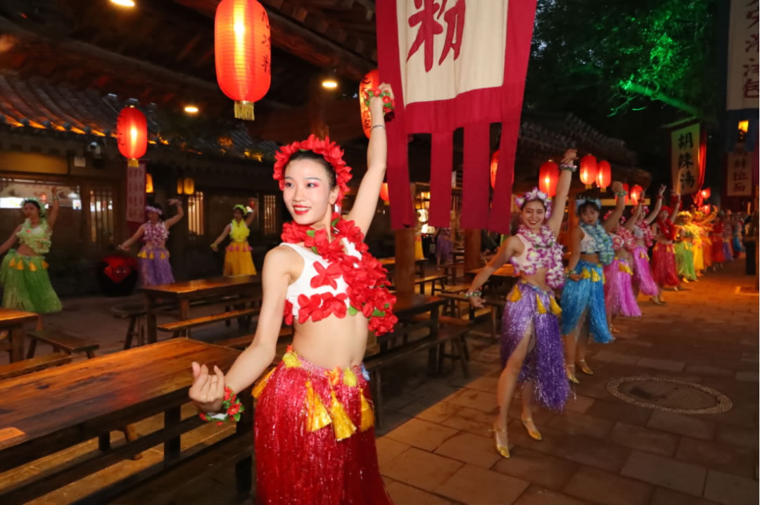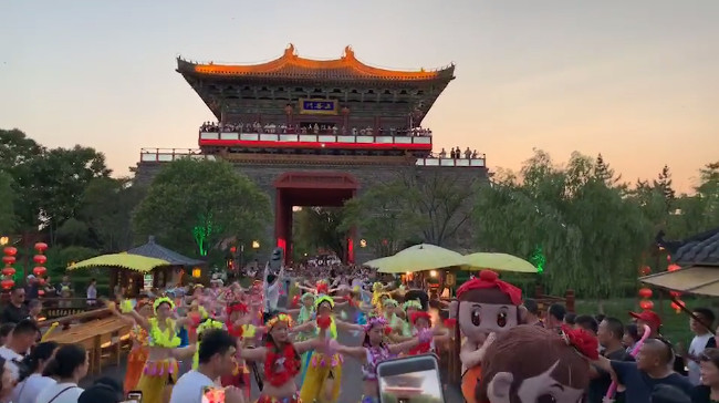 當(dāng)手舞足蹈、歡樂(lè)蹦跳的大宋子民從人群中突然出現(xiàn),與廣大游客們一同狂歡、舞蹈,鬧至通宵,恍然間,好像真的回到了千年前的大宋盛世東京城。