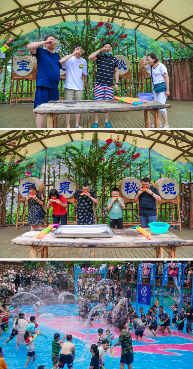 魅力主播與聽眾們紛紛參與景區(qū)特別安排的終極潑水狂歡秀,吃西瓜、喝啤酒挑戰(zhàn)賽之中,激情互動,萬眾狂歡!