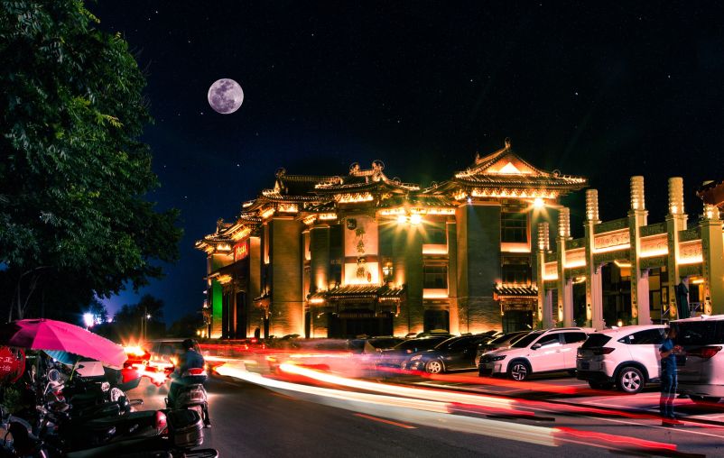 飛檐黛瓦,夏木垂蔭,長街古巷,紅燈搖曳,古韻悠長的街巷中,漫步在歷史的故事里,微醺在小鎮(zhèn)夏日涼爽的風。
