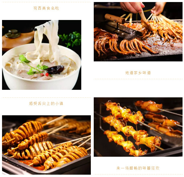 河南燴面、酸菜豆面條、神仙涼粉、涮牛肚、大面筋、鐵板魷魚、麻辣小龍蝦、燒烤串串……上百味美食名吃薈聚一城,為你帶來舌尖上的味蕾盛宴。