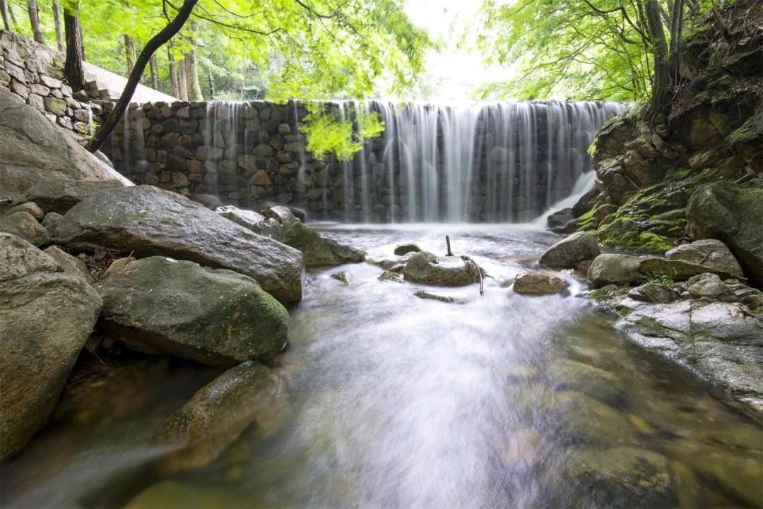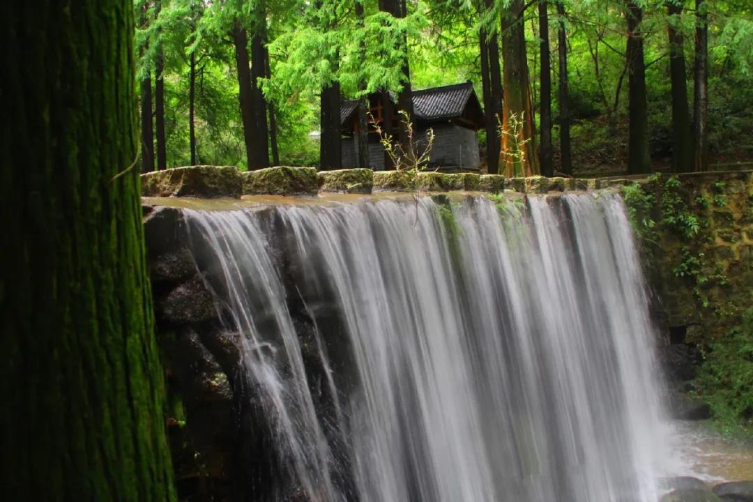 伴隨著巨大水聲可見一道道瀑布飛流直下